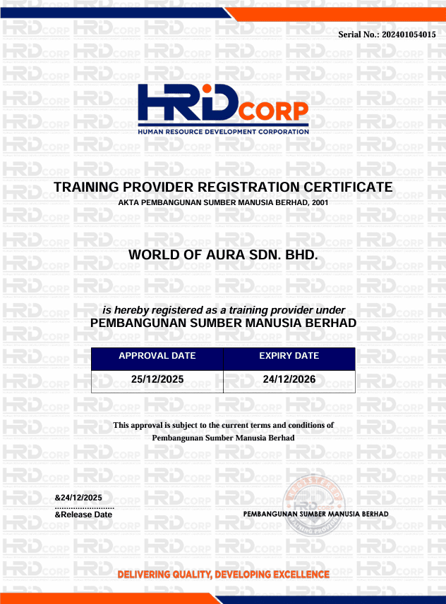 Angelica is the Founder and Lead Trainer of World of Aura Sdn Bhd, specialising in stress regulation, emotional resilience, and workplace wellbeing through structured, corporate-safe methodologies. With strong credentials in aromatherapy, clinical hypnotherapy, and wellness education, she designs and delivers training that combines scientific stress fundamentals, sensory-based regulation tools, and practical habit integration for sustainable performance.